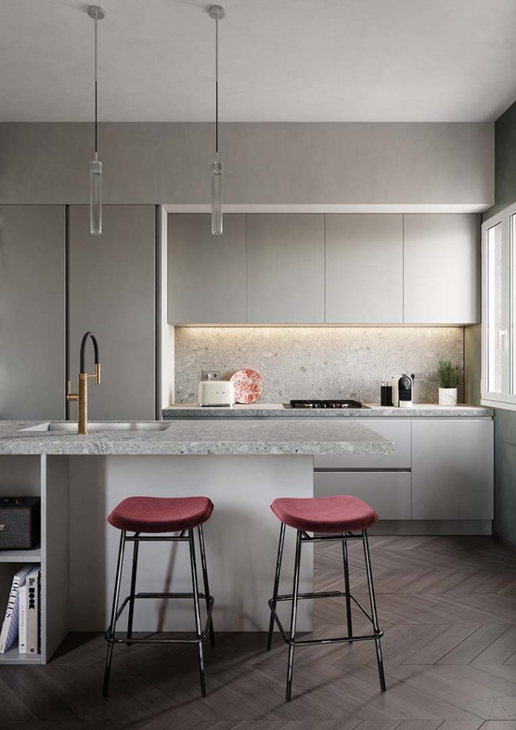 All products used to furnish this treasure chest are prestigious and qualitative, from the Pivato doors to the Binova kitchen base, embellished with many variants. The used brands are high-end, and the furniture is all tailor-made and customised. The use of mirrors, crystal surfaces and distinctive lighting techniques enlightened the spaces through the play of transparency and reflections.