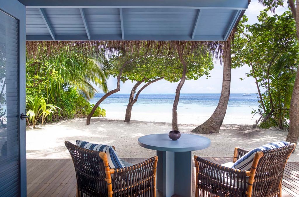 Raffles Maldives Meradhoo’s villas and residences are designed to be discreet and lavish, with a prudent composition of raw and polished furnishings in teak and dark oak complemented by rattan and straw accents.